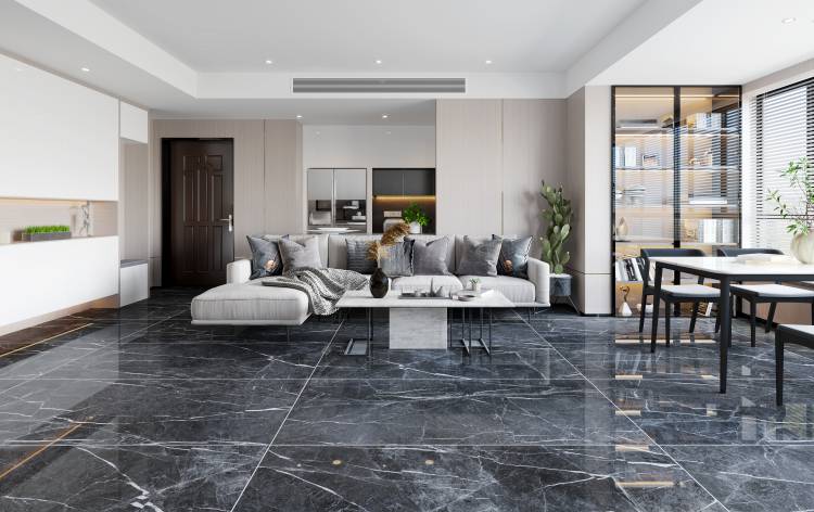 时尚,无任何约束你走过的每一寸空间见过的每一样物品都是时尚的影子森尼主打时尚以年轻的生活方式演绎现代家居空间作为黄金规格比例产品,无论是上墙还是铺地,将空间完美比例一一呈现出来。莫地卡深灰大理石瓷砖真实还原天然大理石纹理,将大理石肌理最大限度的完整呈现于砖面。多样的纹理,展现百变的时尚,面面俱到,演绎生活新时尚。生活有了色彩,更加充满欢乐;空间有了色彩,时尚感更强。森尼750X1500黄金规格大板莫地卡深灰,作为地面灰色主色调,与海洋蓝背景墙亦或白色皮质沙发搭配,整个空间都散发出年轻的气息。莫地卡深灰不只是年轻时尚,更能驾驭轻奢之风。充满现代感的空间,以莫地卡深灰与花砖作为主材产品,金属色茶几
