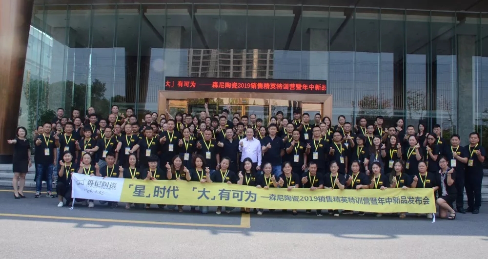 又是一年金九银十之际,森尼陶瓷以新品面市,共享收获之喜。9月18日-9月20日,为期三天的2019销售精英特训营暨年中新品发布会于佛山圆满举行!森尼人大合影本次活动由来自全国各地的森尼家人们齐唱森尼主题歌曲《Wearethescenic》燃情开场。现场齐唱森尼主题曲森尼品牌总经理王庭龙在开营仪式上提到,工作总结是一个整理思路的过程,在销售工作中要学会多总结才能找到快速找到下一步的工作重点,找到工作目标与方向。希望本次的销售精英们能够充分利用本次学习机会,时刻保持对学习与工作的热情。森尼销售总经理王总致辞经过轻松的团队开场游戏后现场氛围持续升温,为本次特训营造了积极热情的基调。游戏互动本次销售精