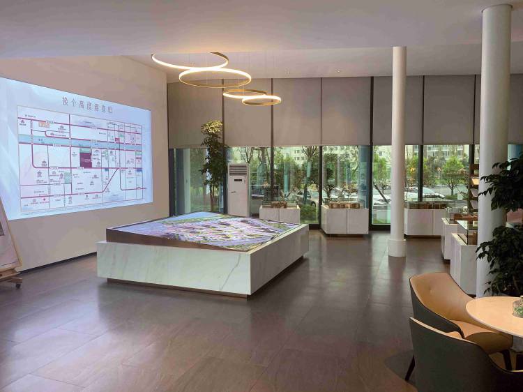 在光与影的交织下,点点星光被唤起,【Magic·星光】在光线的照耀下熠熠生辉。此次项目为银润·中央广场临时售楼部,银润·中央广场属于当地高档住宅小区,小区占地面积100000平方米,建筑面积316600平方米。»临时售楼部外景»临时售楼部平面图银润·中央广场临时售楼部分为大堂、水吧区、洽谈区、办公区,利用巧妙的设计将动线与静线区分开来。银润·中央广场临时售楼部大堂采用现代简约设计,在色彩的搭配及运用中以黑白灰为主,高耸的白色柱子与星光釉地面相互呼应。在光线的照射下,可以隐约看到地面星光闪闪。»临时售楼部大堂银润·中央广场临时售楼部水吧台将时尚与休闲相结合,即满足人们对生活的品位,又充分展示出现