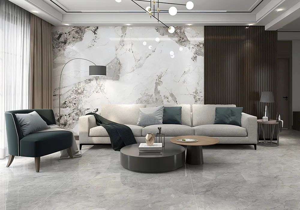 900*1800规格的黄金海岸瓷砖搭配现代风沙发