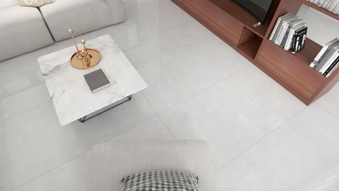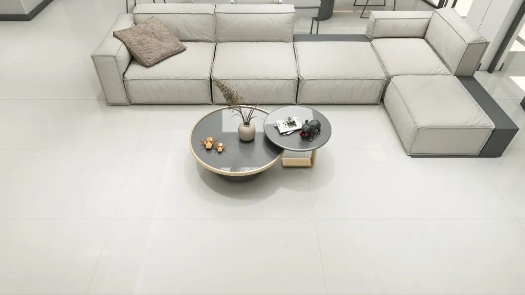 色系主打浅灰、暖米黄的微纹理亮面砖,
