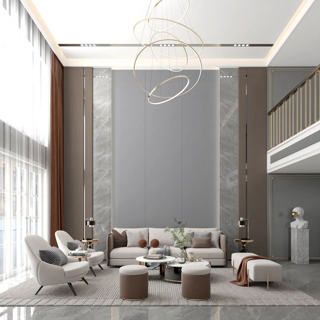 不同于米黄的阳光,中灰表达的高级调影响着空间应用。编织皮纹自然亲近,商务中灰给人一种干练不敢惹的气质,鳞光闪现中构建高级感空间。