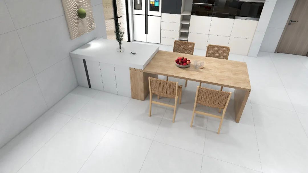 添一个中岛台,多一份生活滋味。用于日常配餐、用餐,以及家常会客也能很好适应,平添温馨雅致。