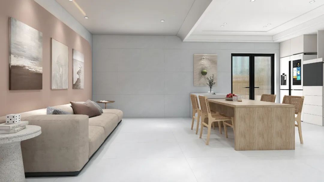 :应用A+级纯色釉料着色细腻,远观细看呈现不同光面质感,家装时尚,工装高级。