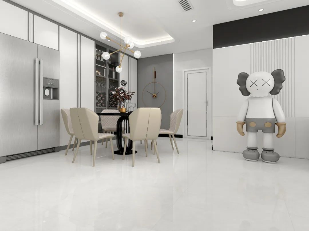 作为方正砖的代表,800x800mm规格铺贴多样性更为突出,以一块砖为支点,前后左右连接整个空间,更具规格平衡美感。