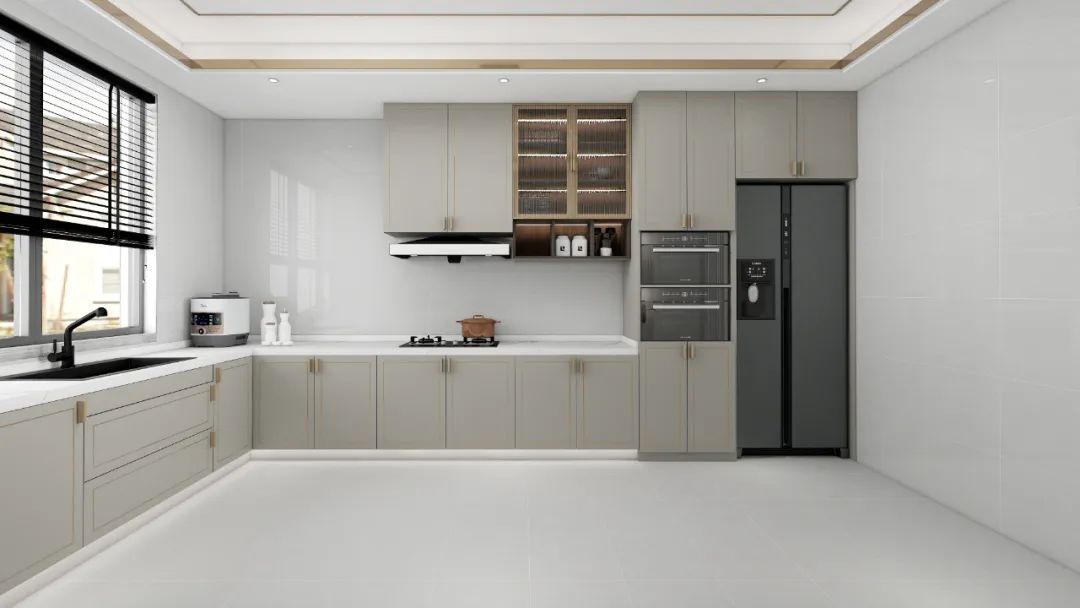 颜值至上!厨房空间运用现代雅色作为空间主题,珐琅灰精彩多样的呈现为空间增添别样趣味。