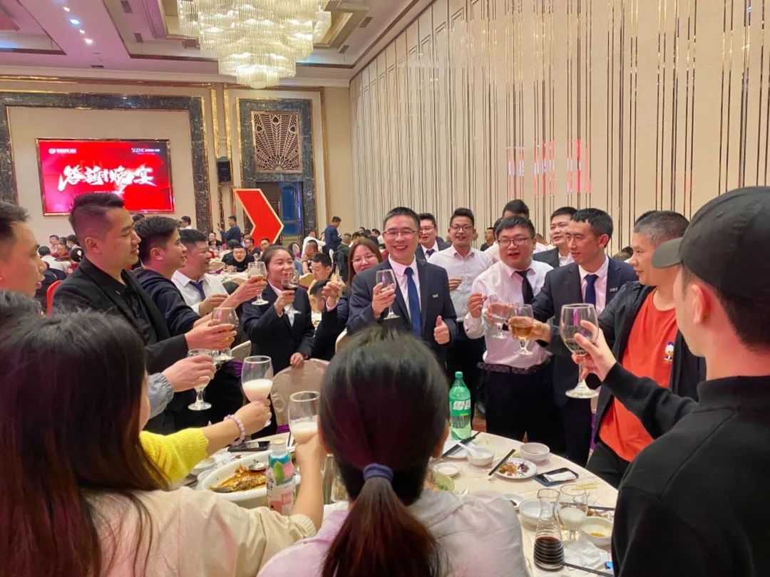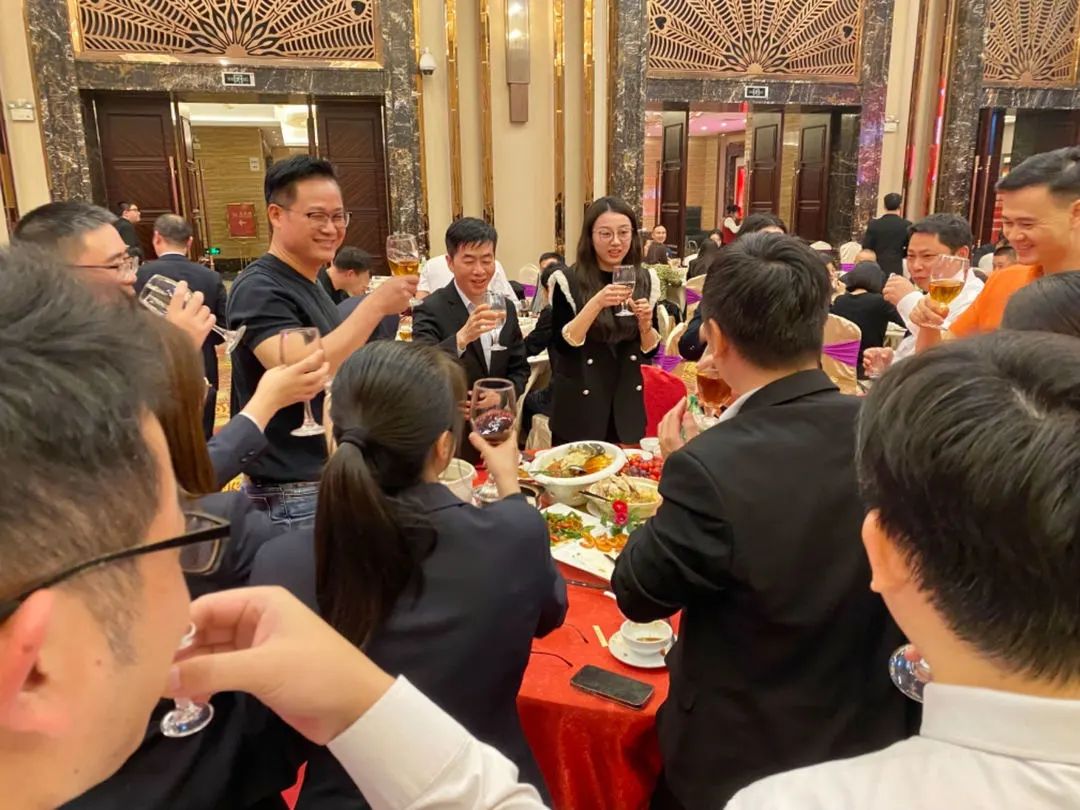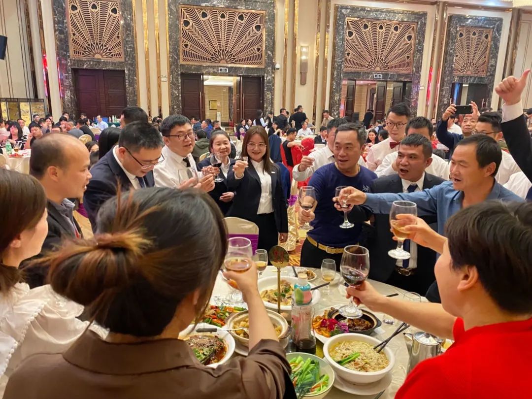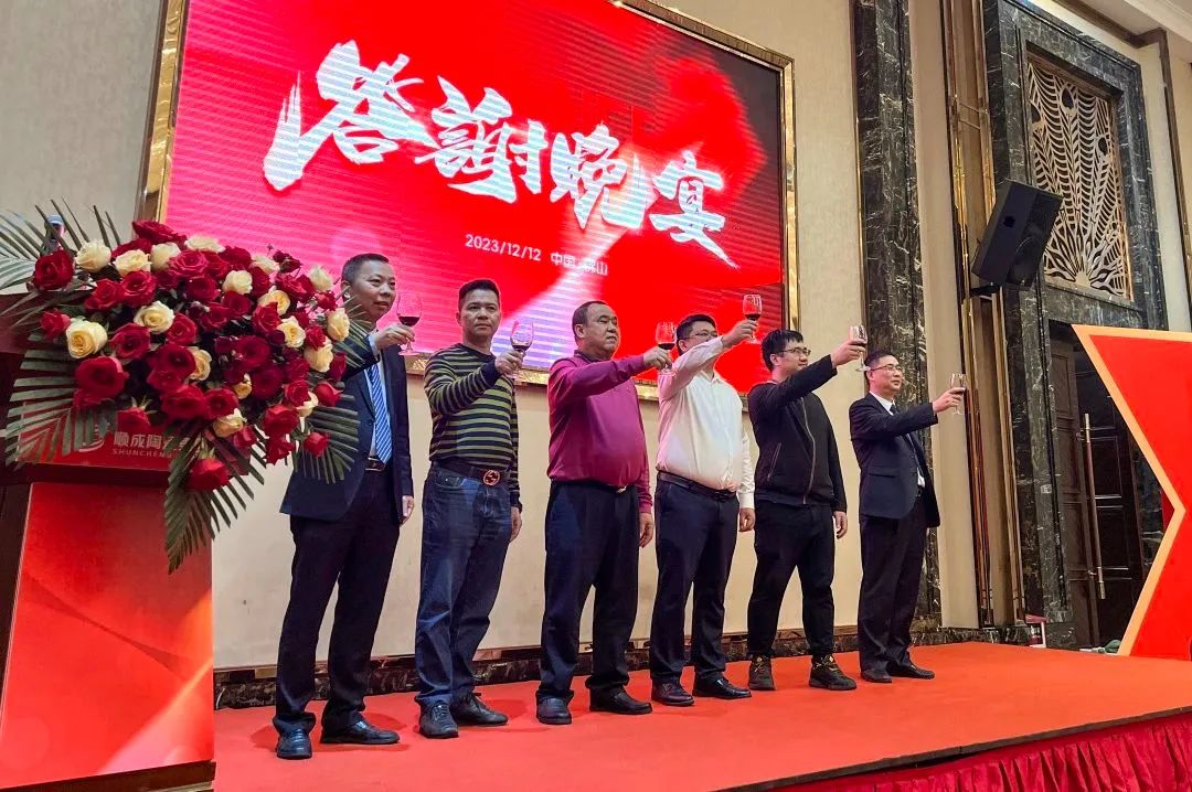▲顺成陶瓷集团董事长梁有福携一众领导祝酒