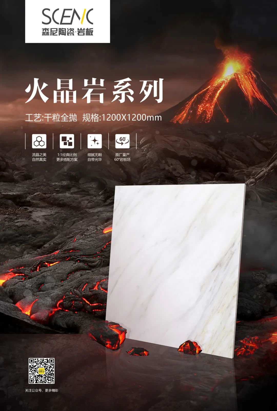 岩浆经火山口喷发遇空气成“火晶岩”形态,漂亮的晶体状成为天然的艺术作品,色彩协调而性能稳定。以全新工艺微光超细干粒及数码微浮雕工艺,融合艺术创作,火晶岩自然奢美,光泽更丰富。
