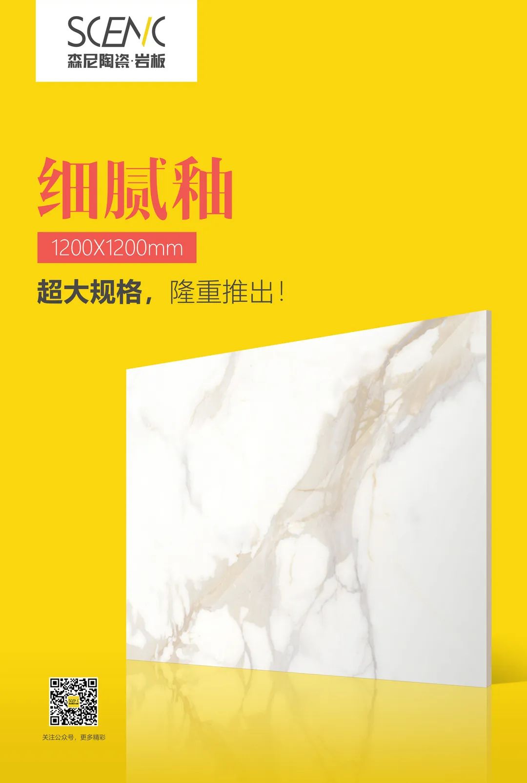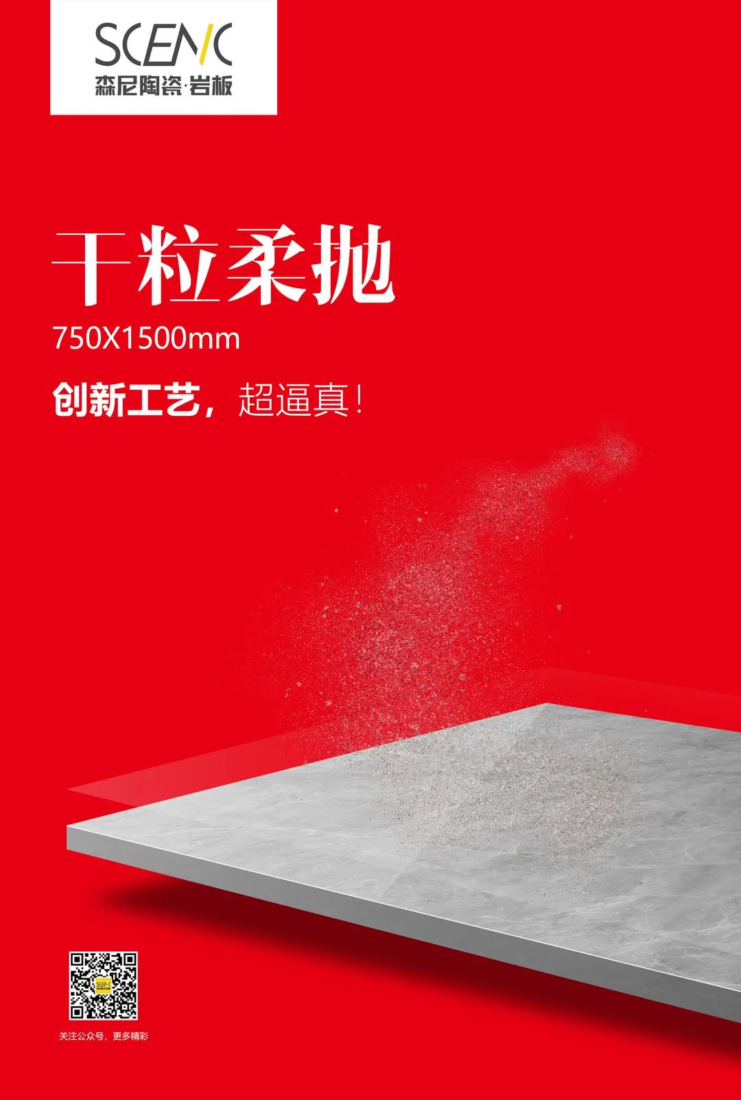 在消费降级流行的2023,很多陶瓷砖产品也在“降级”。森尼陶瓷·岩板逆流而上,凭借强大的工厂研发能力,连续推出“肌肤釉如天鹅绒般顺滑”“星丝绒”“细腻釉”“干粒柔抛”“干粒全抛”等新工艺产品,风靡博洛尼亚展1200x1200mm方正大岩板也已经陆续排产面市!