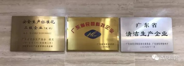 作为陶瓷生产企业,森尼陶瓷将环保的理念贯彻到生产的每一个环节当中。通过自主创新结合节能减排技术,在生产过程中已经实现了生产废水零排放、废渣零排放以及烟气集中处理合格后再排放的环保高标准。森尼陶瓷从智能生产到产品绿色环保,一直走在趋势和行业的领先地位,被评为“广东省清洁生产企业”、“绿牌环保诚信企业”等。