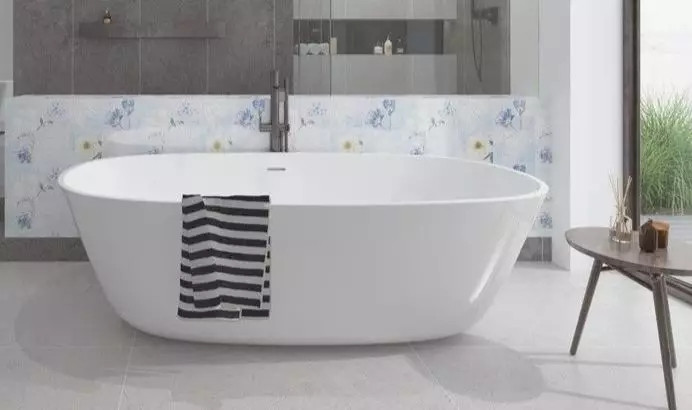 卫生间里只要局部铺贴,花砖区域就是亮点区域。如果想突出或强调一个区域,可以利用这点。