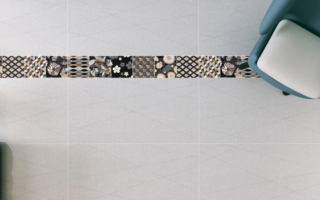 小花砖上墙清新简约,但是小花砖同样适合地面的铺贴搭配。星光釉NF26-C74A612星空作为地面主砖,搭配深色小花砖NR31*150A*11A00*101,恰到好处的搭配,使空间区域功能划分明显,又简约时尚,满满的现代感。