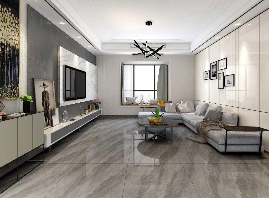 深灰色与黑白色是最搭的,在简约中增添几分深沉,即凸显时尚,又不失高雅。现代风的设计,总是能抓住产品的特性,巧妙的进行搭配,呈现出自然完美的舒适空间。800X800连纹砖对于空间的大小无任何要求,无论多大空间都可以做到灵活运用,收放自如。在空间运用中无论是单片直铺还是混合直铺,都不影响整体美观度,即“一片砖,一个空间”。