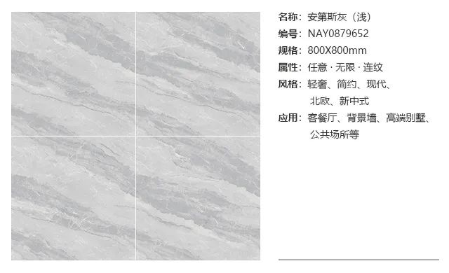 连纹砖是目前陶瓷行业最火最流行的瓷砖产品,因其独特的纹理,可连续型铺贴方式,在众多产品中脱颖而出。随着消费群体的不断年轻化,瓷砖产品的个性化也逐渐成为消费者的主要需求。而连纹产品其铺贴方式多样,展示出来的空间效果自然独一无二。800X800连纹砖从产品本身到运用,都真正做到了无限连纹。在铺贴时,无需组合复制,单片就可实现连纹效果,其任意连接,都能自成一派,简直就是一副靓丽的风景画。