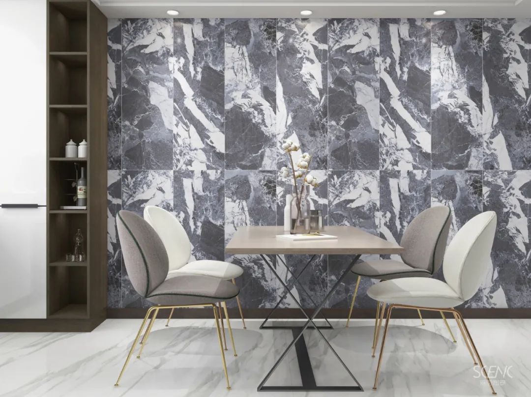 越是高级的空间,越简单自然。400X1200【幻·石】系列新品诺瓦拉以自然原生态的纹理,搭配现代简约餐桌,瞬间呈现出空间满满的高级感。