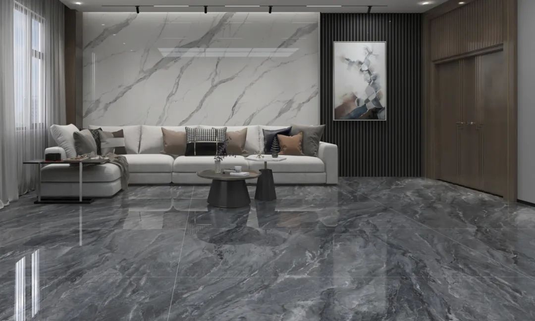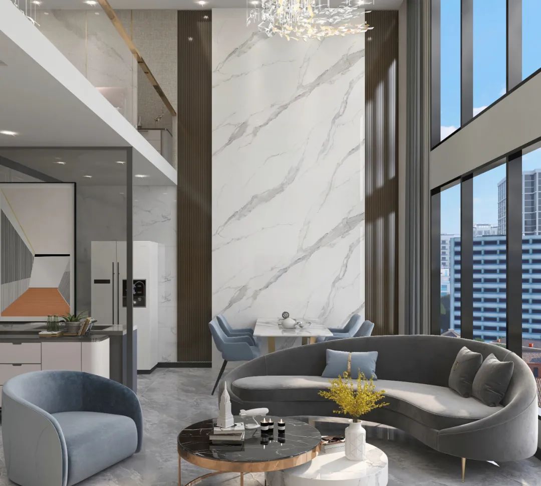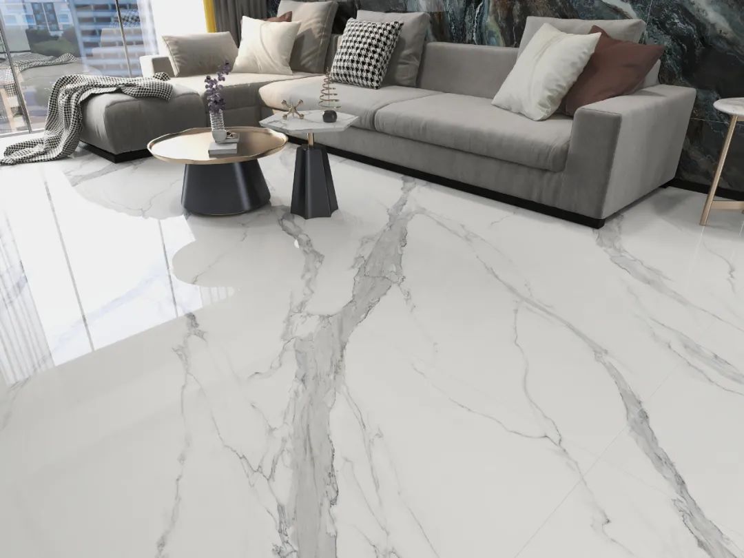 【极地白NMB412EK0969-L3】1200*2400*9mm在空间运用中不仅可以随意铺贴,还可以根据不同家居格局进行造型切割。大规格的尺寸,使得家居空间整体性更强,而连纹设计,更为家居的颜值神助攻。